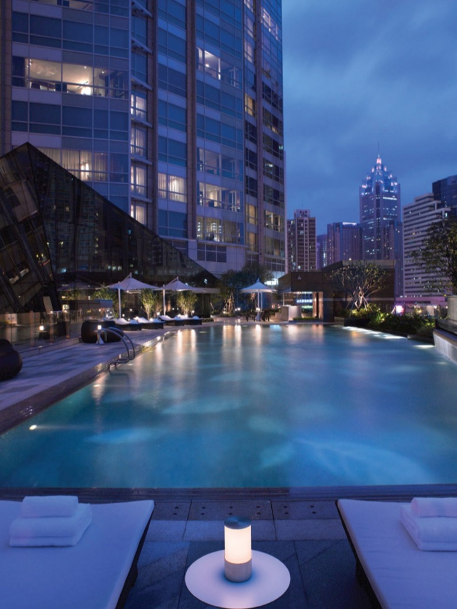 健身房介绍 「水鄉」水疗中心配设的健身中心配备美国最新式的健身器材,各附设触按式屏幕,让您随意观看电视或连接音响设备以聆听音乐或欣赏电影,此外,屏幕装置还设有模拟训练片段供您参考。专门设置的健身操房还可进行瑜伽、普拉提、太极等练习。酒店还可应客人的要求提供专业健身教练进行协助。 游泳池介绍 长达25米的恒温室外游泳池位于健身中心附近,池畔设有德国进口的优质沙滩椅,让客人在游泳过程中的间歇静心休息。 深圳君悦酒店 免费停车不超过4小时