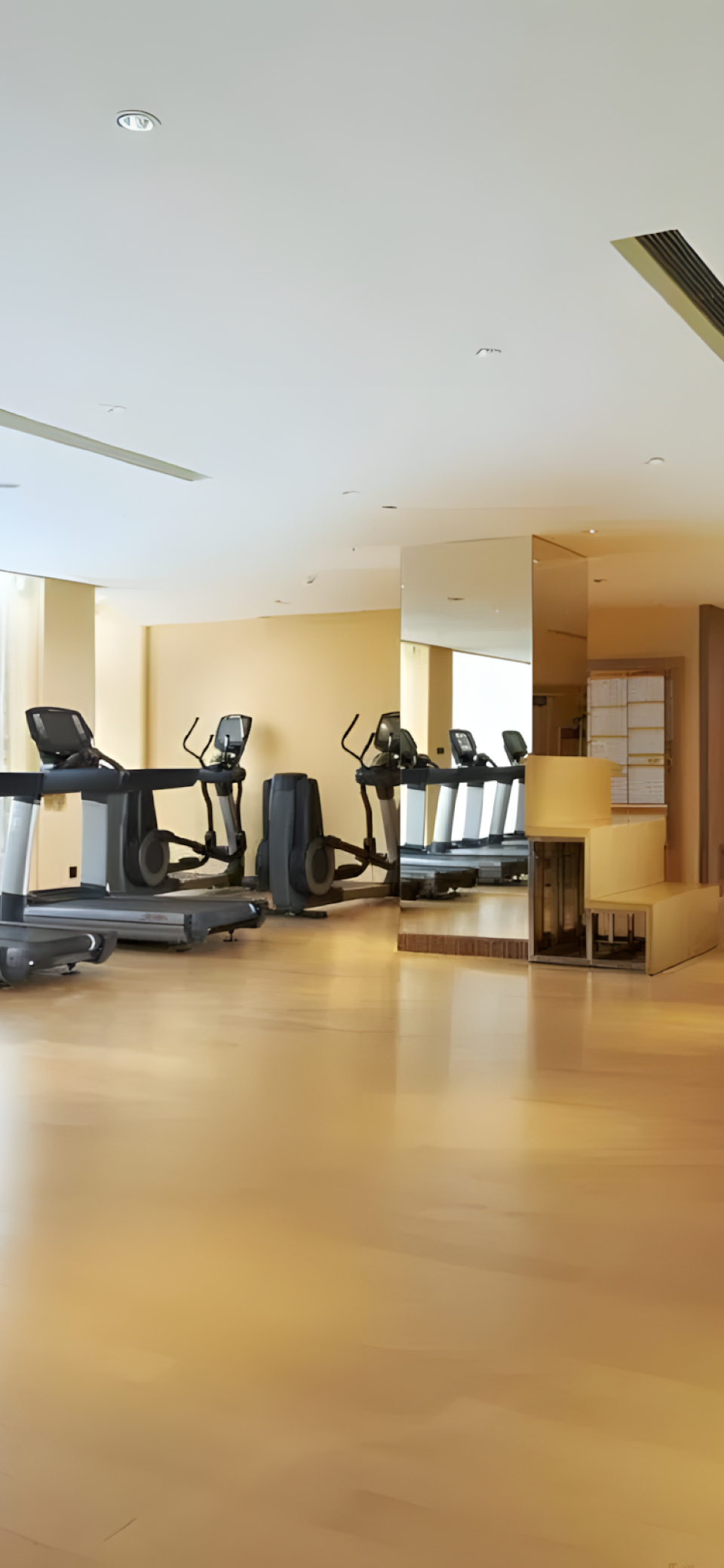 酒店游泳健身中心总面积达615平方米 共分为两层 底层健身中心面积达到398平方米 主要提供有氧运动设备和强化健身器材 更高一层为217平米的恒温游泳池。 位于男女更衣室里面设置了蒸气房,桑拿房,以及热水按摩池。